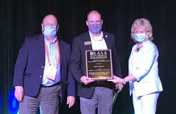 Brown received the William T. Nallia Award at KASA’s 52nd Annual Leadership Institute in Louisville on July 31 before an audience of several hundred school administrators from across Kentucky.
